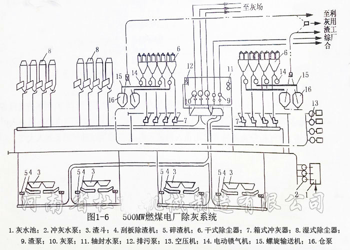 圖1-7是該廠除灰系統(tǒng)工藝流程圖。