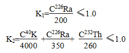 我國制定的建筑材料放射性衛(wèi)生防護(hù)標(biāo)準(zhǔn)(GB6566-86),對用與住房和公共生活用房的建筑材料,要求同時滿足下述兩式: